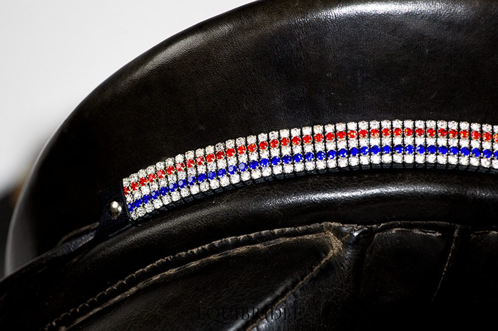 Dit zadeljuweel is gemaakt van strass stenen op leder, met aan de achterkant een laagje fleece.