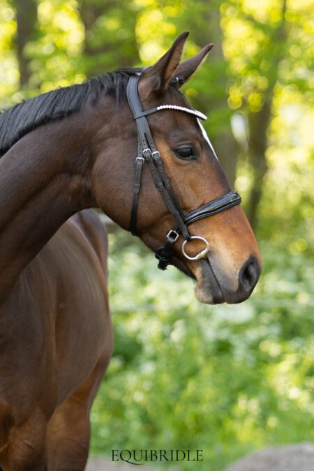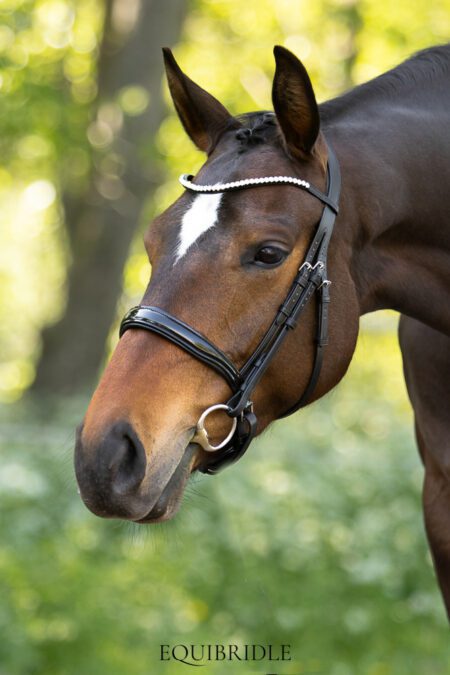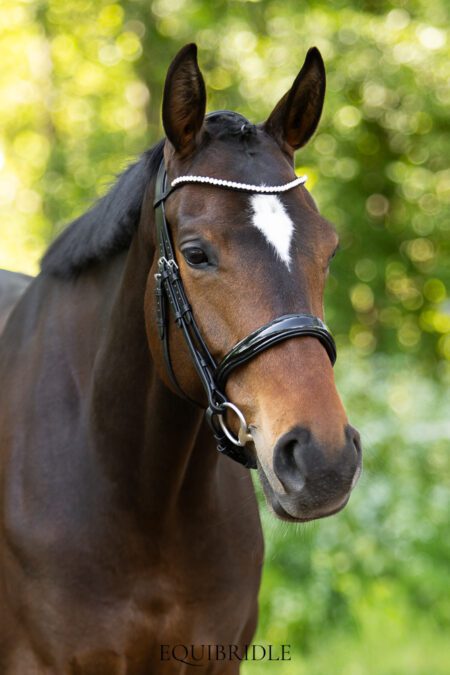 Standaard geleverd met een fonkelende frontriem voorzien van 6 mm PRECIOSA kristallen. Liever een handgemaakte frontriem naar keuze? Voeg die los toe aan je winkelmandje en gebruik de kortingscode ANDEREFRONTRIEM om de standaard frontriem te laten vervallen.