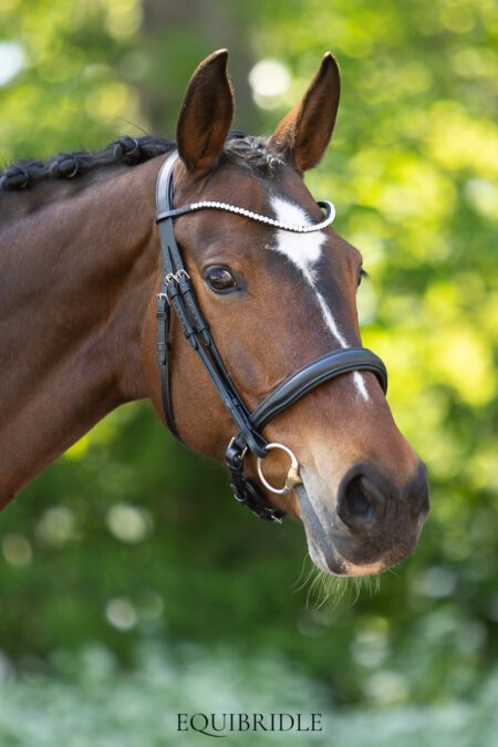 Frontriem met 6 mm PRECIOSA-kristallen, voor een verfijnde, stijlvolle uitstraling. Liever een unieke, handgemaakte frontriem? Voeg deze dan los toe aan je winkelmandje en gebruik de kortingscode ANDEREFRONTRIEM om de standaard frontriem te laten vervallen. Let op: bij een handgemaakte frontriem kan het hoofdstel alleen geretourneerd of geruild worden zonder frontriem.