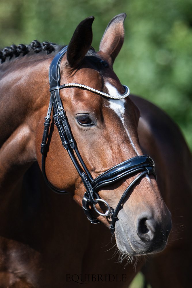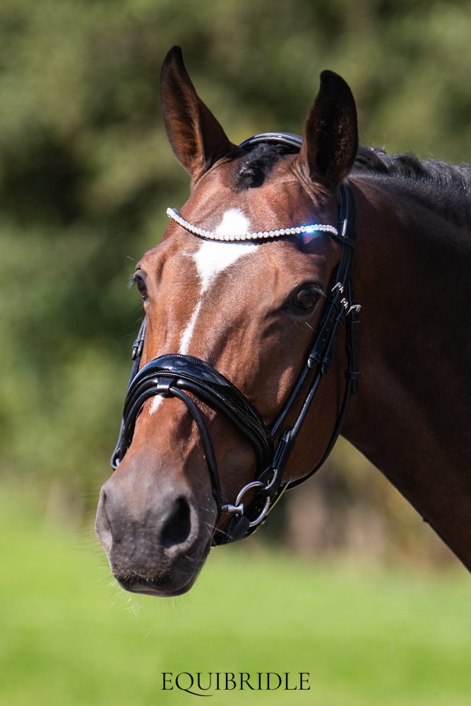 - Recht kopstuk – Sommige paarden hebben een erg ongelijkheid in bespiering achter de oren. Een anatomisch kopstuk is dan niet geschikt doordat deze bij ongelijke bespiering ook ongelijke druk geeft. Vaak waardeert het paard een normaal recht kopstuk dan het meest. Ook dit kopstuk is onderlegd met super soft leder.
