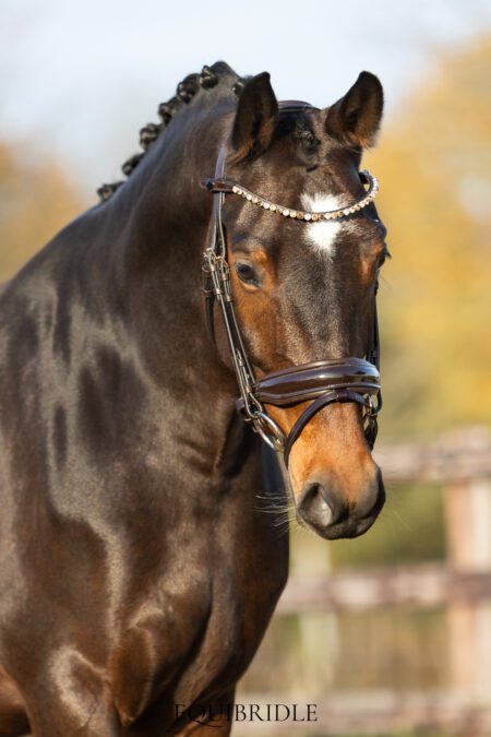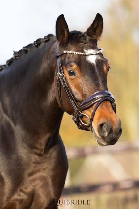 Dit exclusieve hoofdstel is vervaardigd van premium Europees leder – soepel, duurzaam en met een verfijnde afwerking. Het leer heeft een luxe uitstraling en blijft langdurig mooi in gebruik. Zowel het kopstuk als de neusriem zijn royaal onderlegd met super soft leder voor optimaal comfort voor je paard.