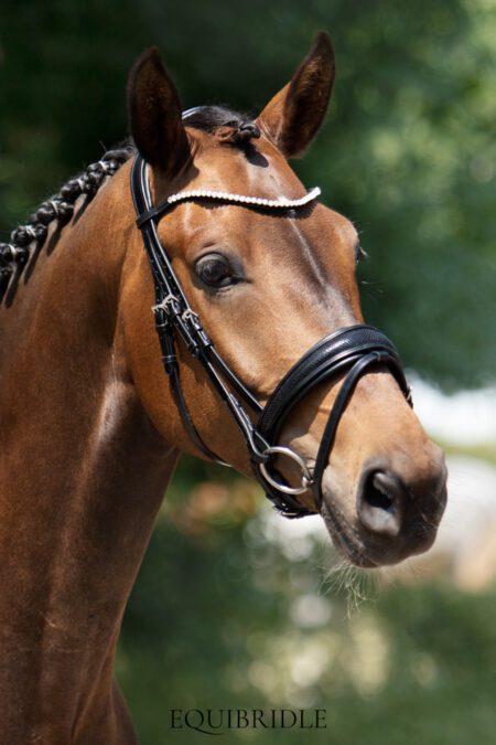 Het Armani hoofdstel is een elegante en functionele keuze voor wie op zoek is naar comfort én uitstraling. Gemaakt van soepel zwart Europees leder met een luxe finish en verfijnde afwerking. Zowel het kopstuk als de neusriem zijn onderlegd met super soft leder voor optimaal draagcomfort – prettig voor gevoelige paarden of paarden met een smal of kwetsbaar hoofd.