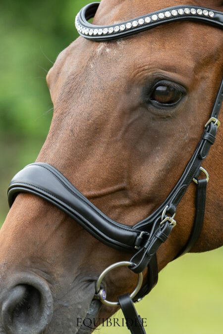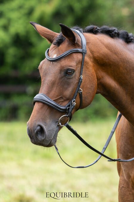 - Geheel anatomisch gevormd en heeft sluitingen aan beide zijden zodat het hoofdstel symmetrisch versteld kan worden.