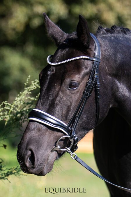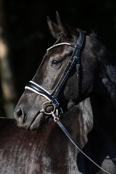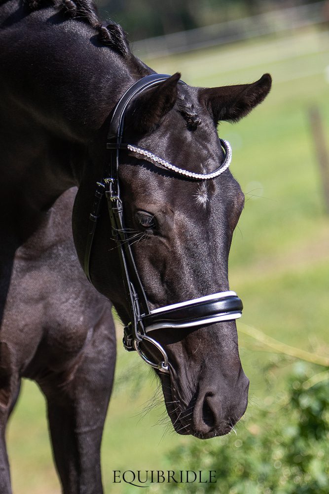 - Recht kopstuk – Sommige paarden hebben een erg ongelijkheid in bespiering achter de oren. Een anatomisch kopstuk is dan niet geschikt doordat deze bij ongelijke bespiering ook ongelijke druk geeft. Vaak waardeert het paard een normaal recht kopstuk dan het meest. Ook dit kopstuk is onderlegd met super soft leder.