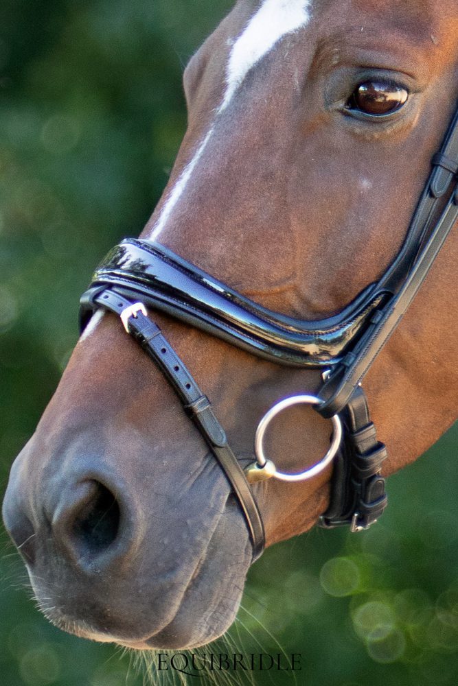 De Equibridle Kingston lak neusriem is een zeer luxe en kwaliteitsvolte anatomische gecombineerde aansnoer neusriem. De neusriem is gemaakt van topkwaliteit italiaans leer. Daarnaast is de neusriem supersoft onderlegd voor optimaal comfort.