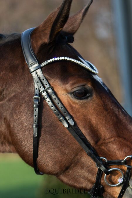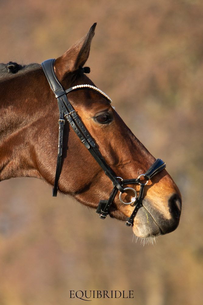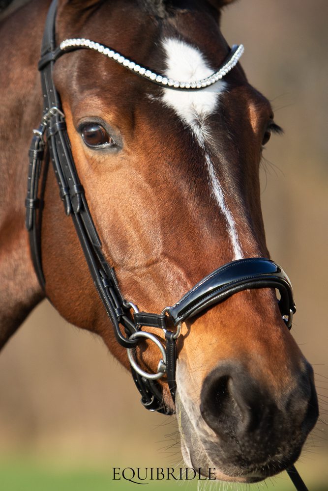 - Recht kopstuk – Sommige paarden hebben een erg ongelijkheid in bespiering achter de oren. Een anatomisch kopstuk is dan niet geschikt doordat deze bij ongelijke bespiering ook ongelijke druk geeft. Vaak waardeert het paard een normaal recht kopstuk dan het meest. Ook dit kopstuk is onderlegd met super soft leder.