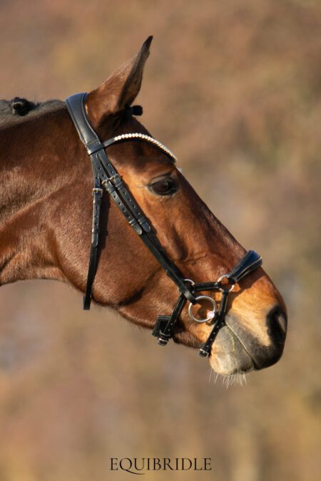- Unieke anatomische lage neusriem. Deze neusriem is speciaal ontworpen voor optimaal comfort voor het paard. De zenuw ligt vrij en het bakstuk netjes naar achter. Door de lage neusriem wordt het bit goed stabiel gehouden.