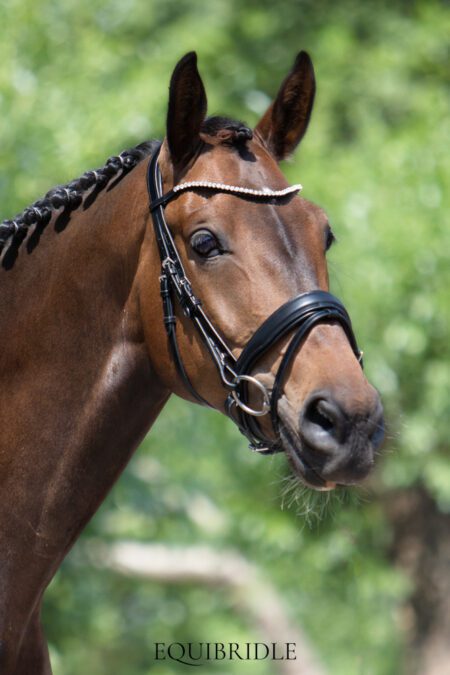 - Recht kopstuk – Sommige paarden hebben een erg ongelijkheid in bespiering achter de oren. Een anatomisch kopstuk is dan niet geschikt doordat deze bij ongelijke bespiering ook ongelijke druk geeft. Vaak waardeert het paard een normaal recht kopstuk dan het meest. Ook dit kopstuk is onderlegd met super soft leder.