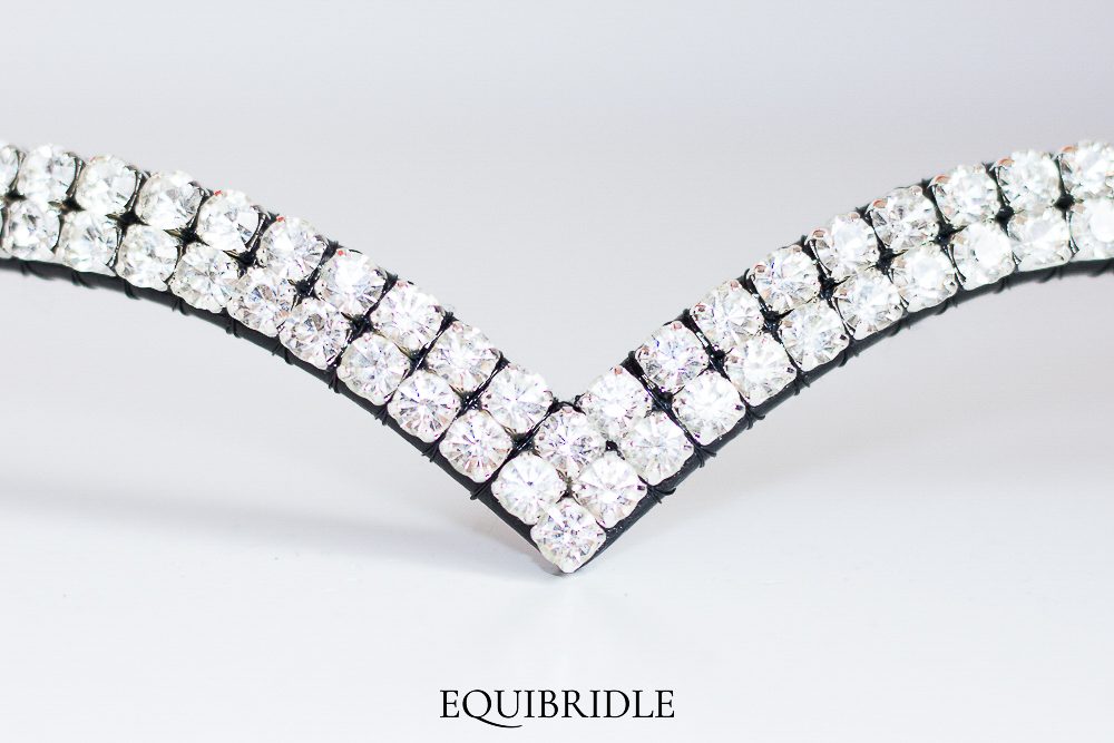 Prachtige kwaliteitsvolle blingfrontriem in V vorm met gestikte lussen.