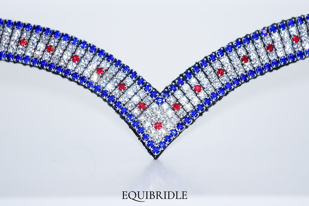 Prachtige kwaliteitsvolle blingfrontriem in V vorm met gestikte lussen.