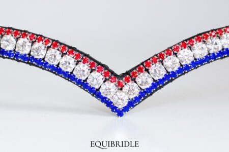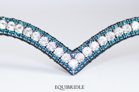 Prachtige kwaliteitsvolle blingfrontriem in V vorm met gestikte lussen.