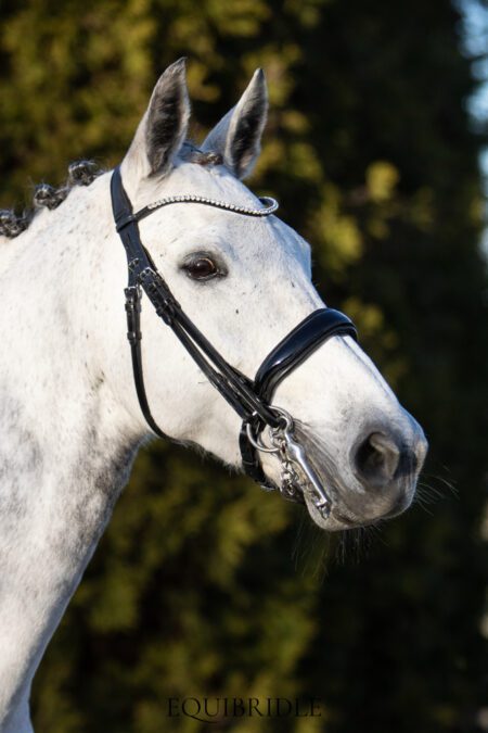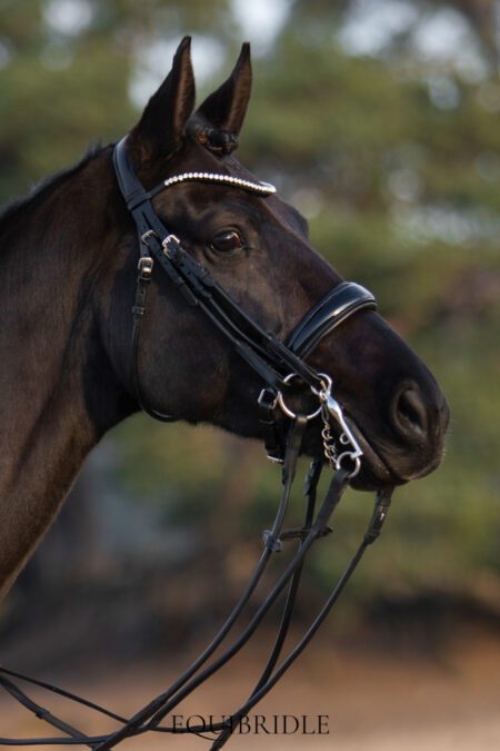 Standaard geleverd met een fonkelende frontriem voorzien van 6 mm PRECIOSA kristallen. Liever een handgemaakte frontriem naar keuze? Voeg die los toe aan je winkelmandje en gebruik de kortingscode ANDEREFRONTRIEM om de standaard frontriem te laten vervallen.
